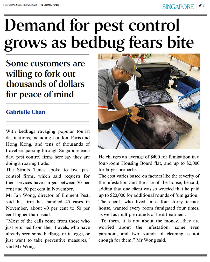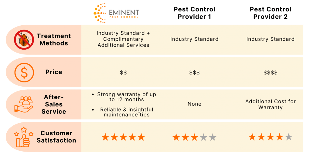 Hence, effective bed bug control requires a comprehensive treatment approach that targets both adult bed bugs and their eggs. Addressing a bed bug infestation requires the expertise of trained professionals. That is why Eminent Pest Control is here for you. We employ specialised techniques, including residual spraying, and heat and/or treatments to eliminate bed bugs of all stages.